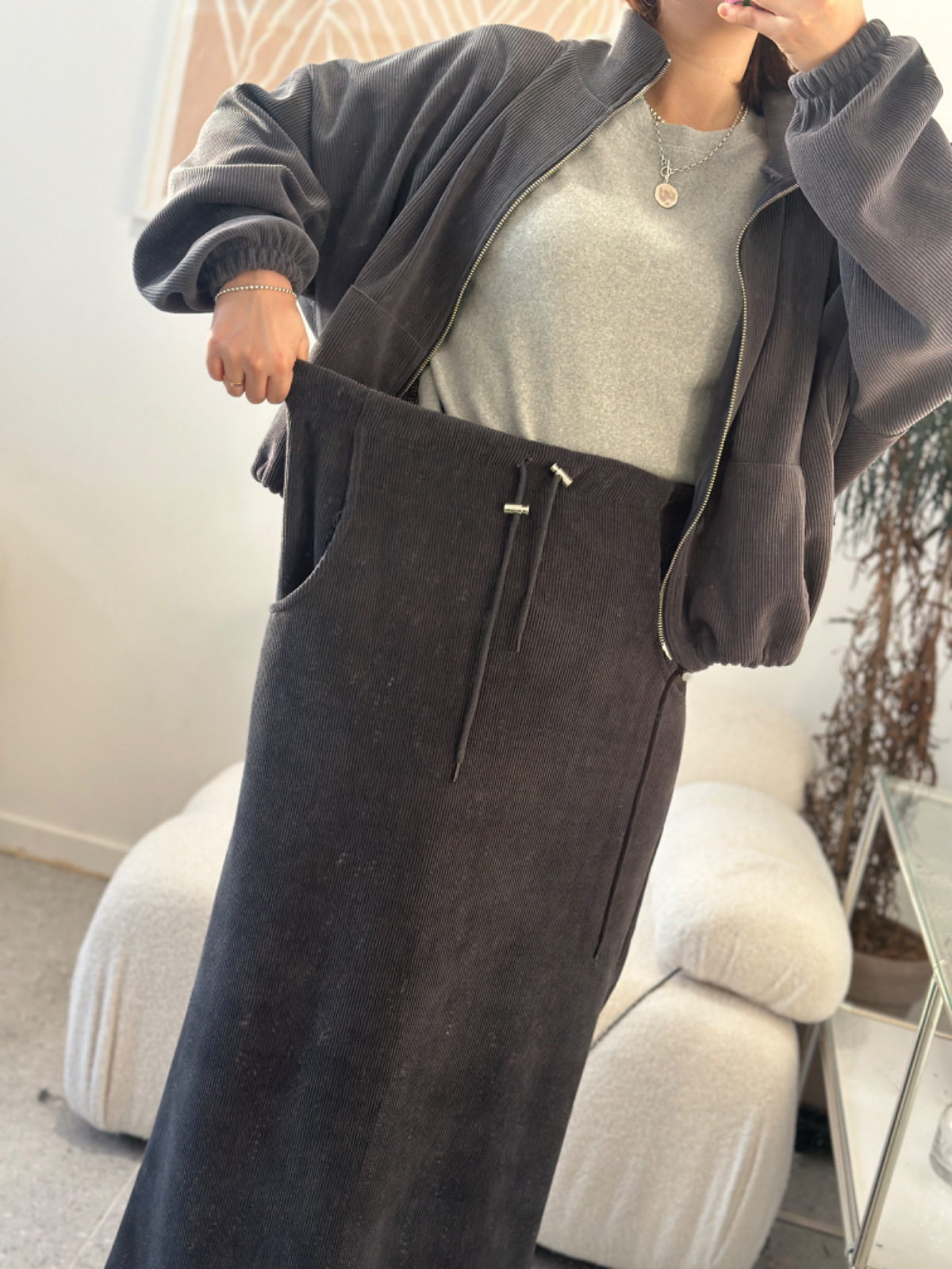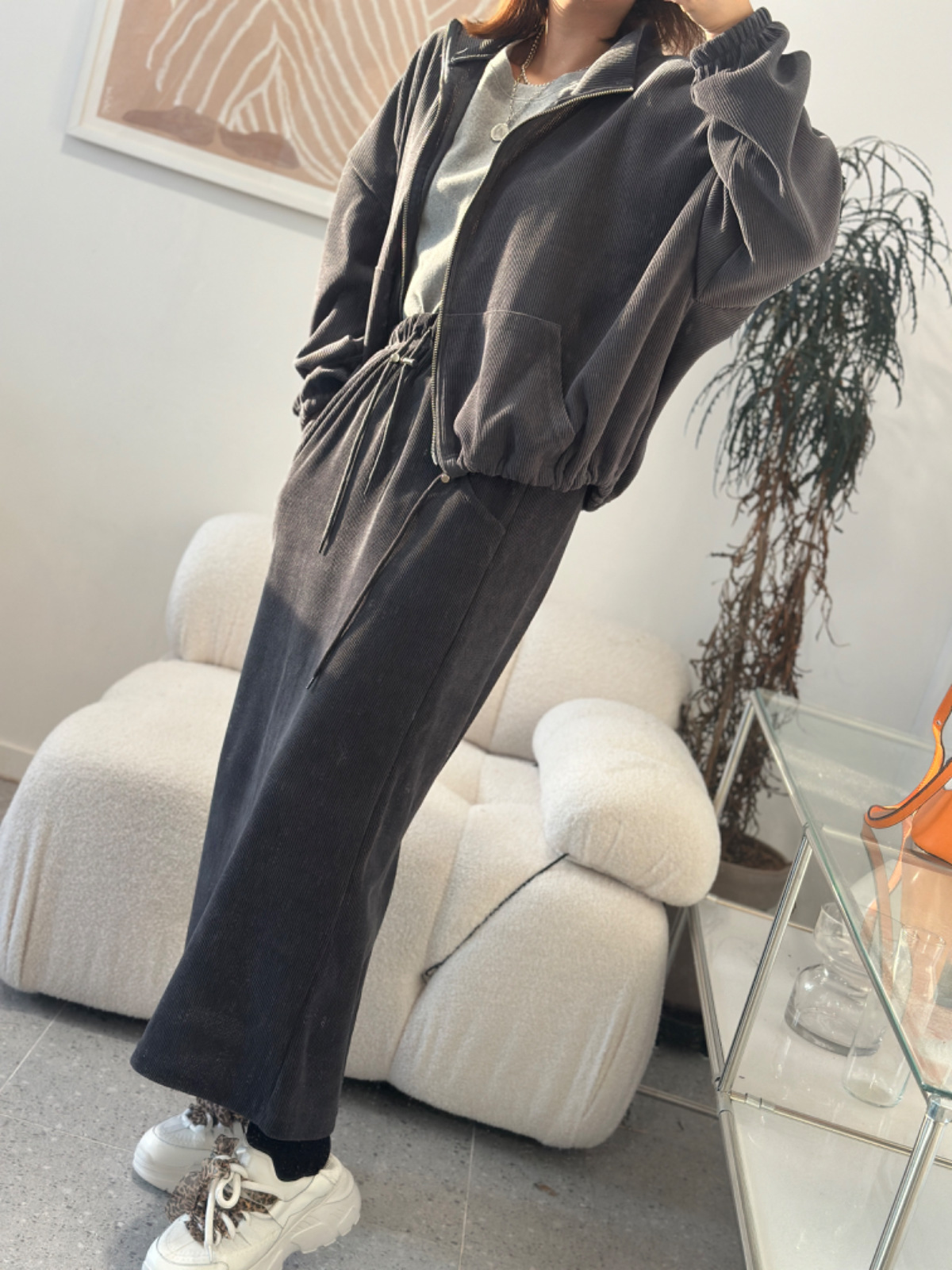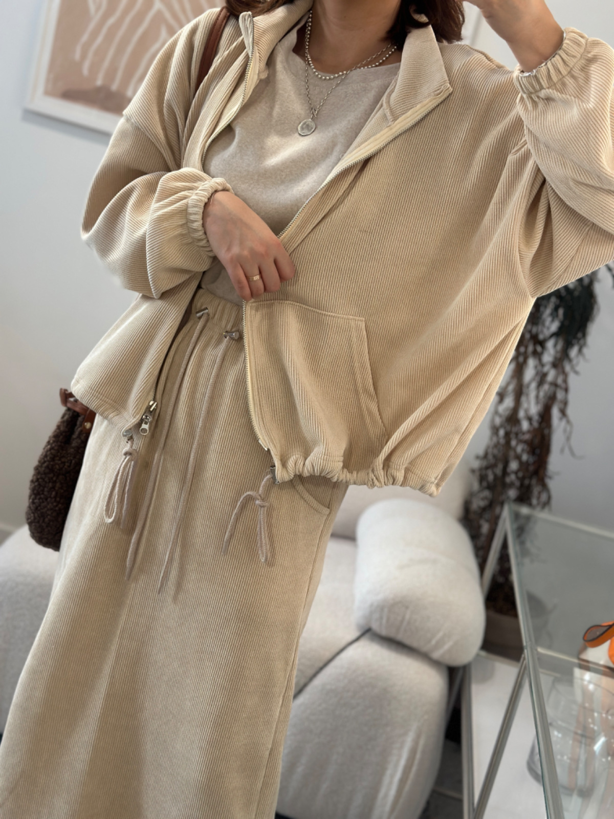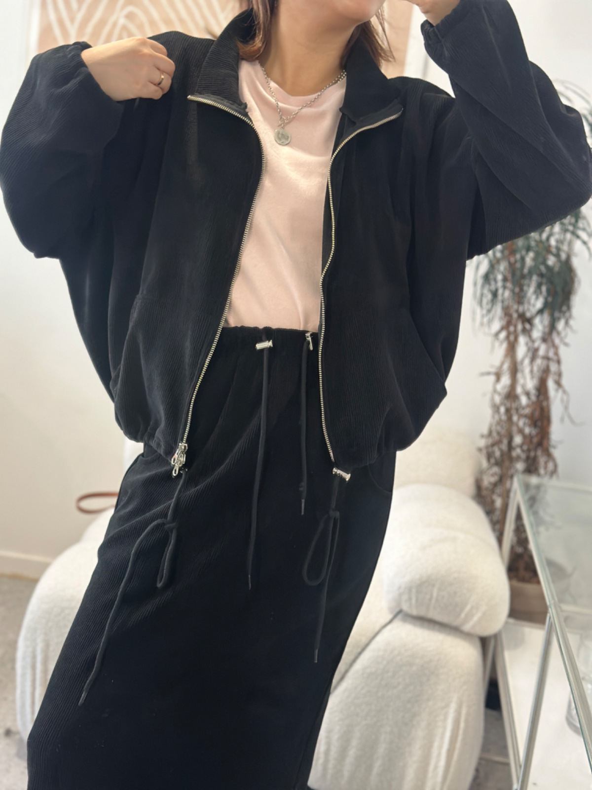 집업은 투웨이버튼 집업에 체형에 따라 아래 밑단을 잡아 입는 스타일!