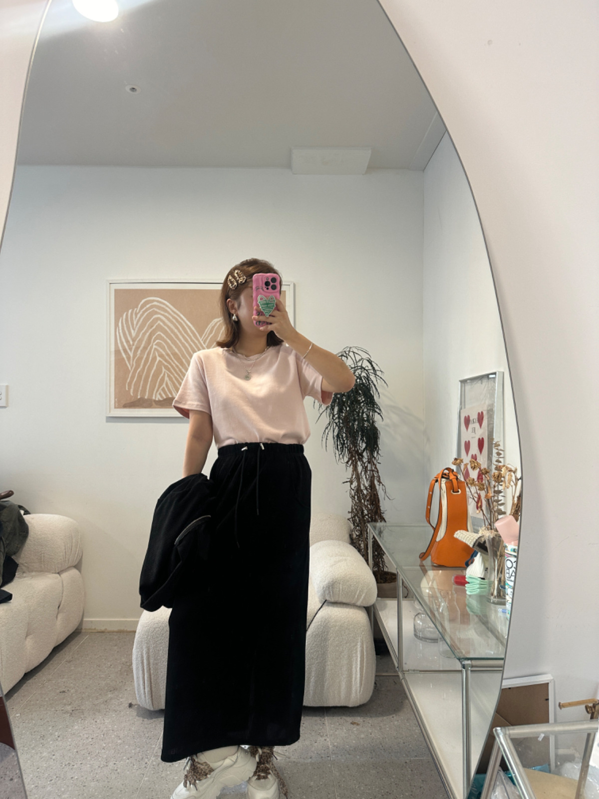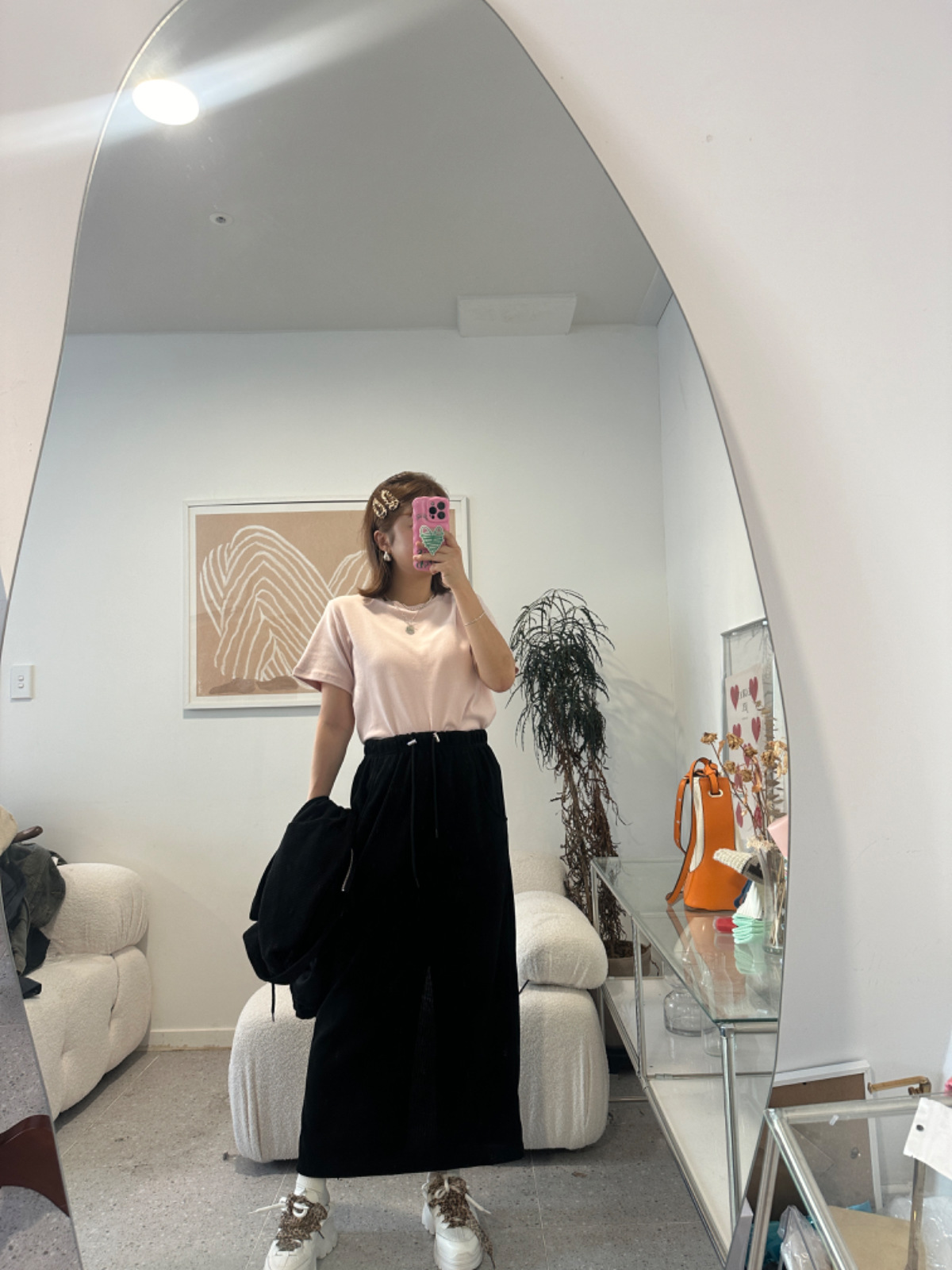 스커트 밴딩은 88도 될만큼 아주 편안하고 일자 라인이지만